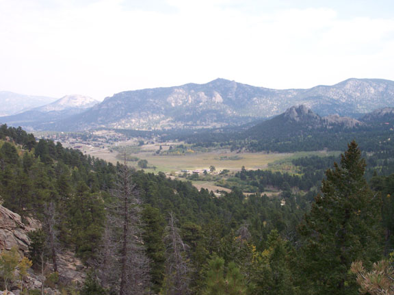 Done with my hike, I headed further uphill in my car to Many Parks Curve, intending to look at the Fern Lake Fire, which ad been burning for several months at this point. Winter was going to extinguish the fire, and I wanted to see it and take a few pictures. It was a Sunday. It wasn’t overly cold, in the upper 20’s, and clouds were coming and going. There were a lot of people in the park, since it was a holiday week and many people were off work and traveling. I got out of my car and took this picture before walking across the road to the walkway that looked out over the fire.